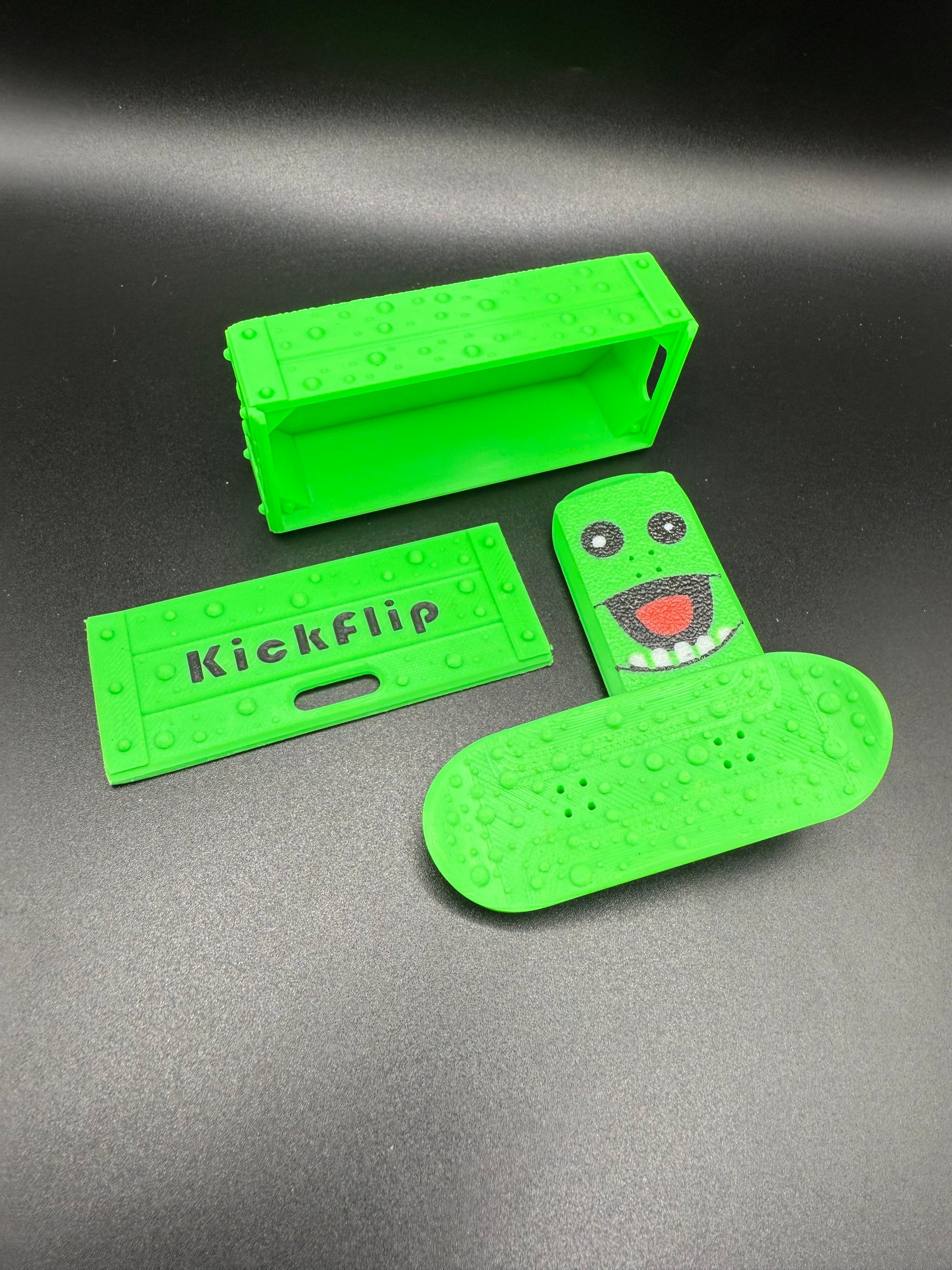 Pickle Kickflip Magnetic Slider – Funny Green Fidget Toy with Optional Storage Crate | Custom 3D Printed Slider