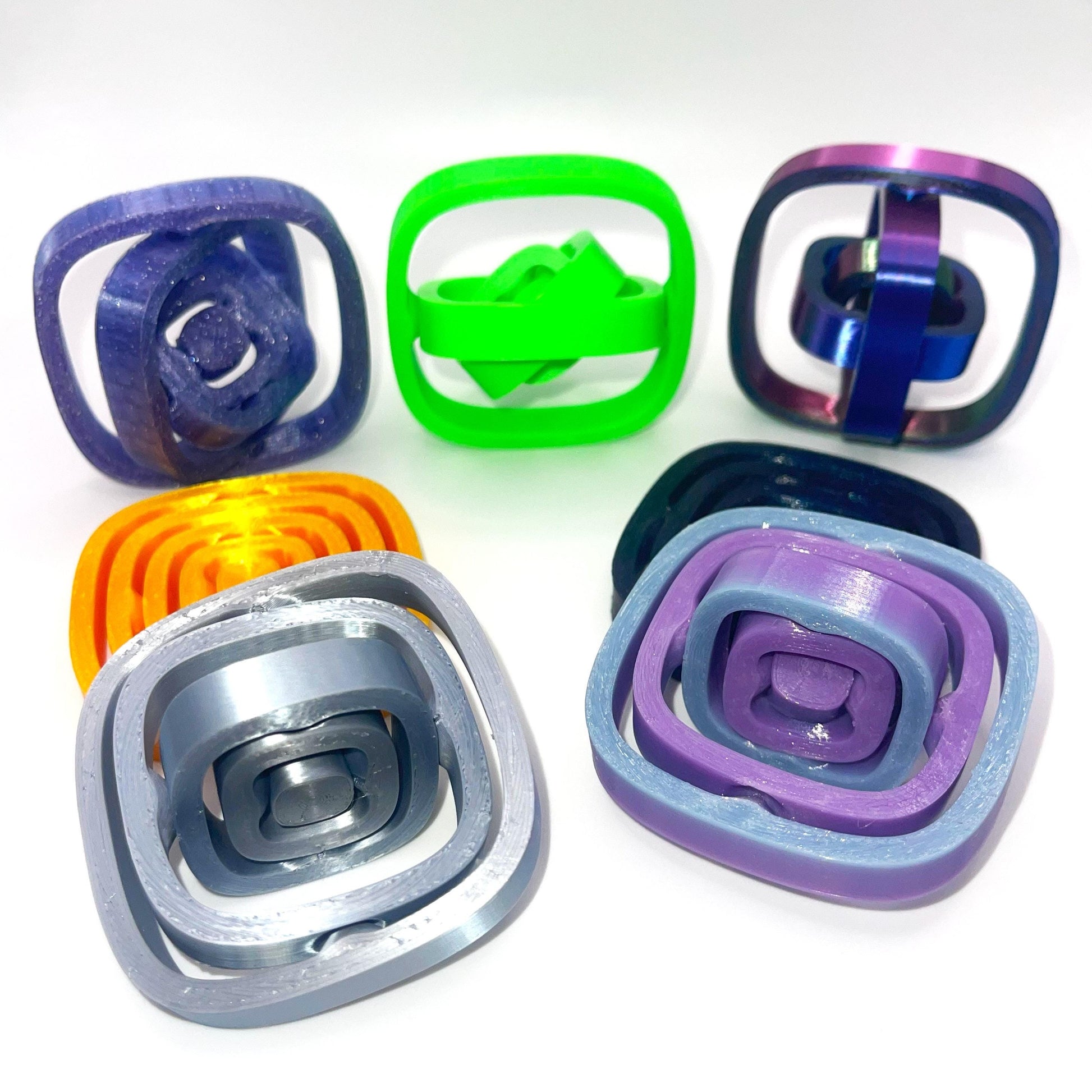 A square-shaped gyroscopic fidget spinner with a mesmerizing rotational effect. The unique design offers a satisfying, fluid motion, making it a standout piece among fidget toys. Whether for stress relief, focus improvement, or just fun, this gyroscopic desk toy is a must-have.