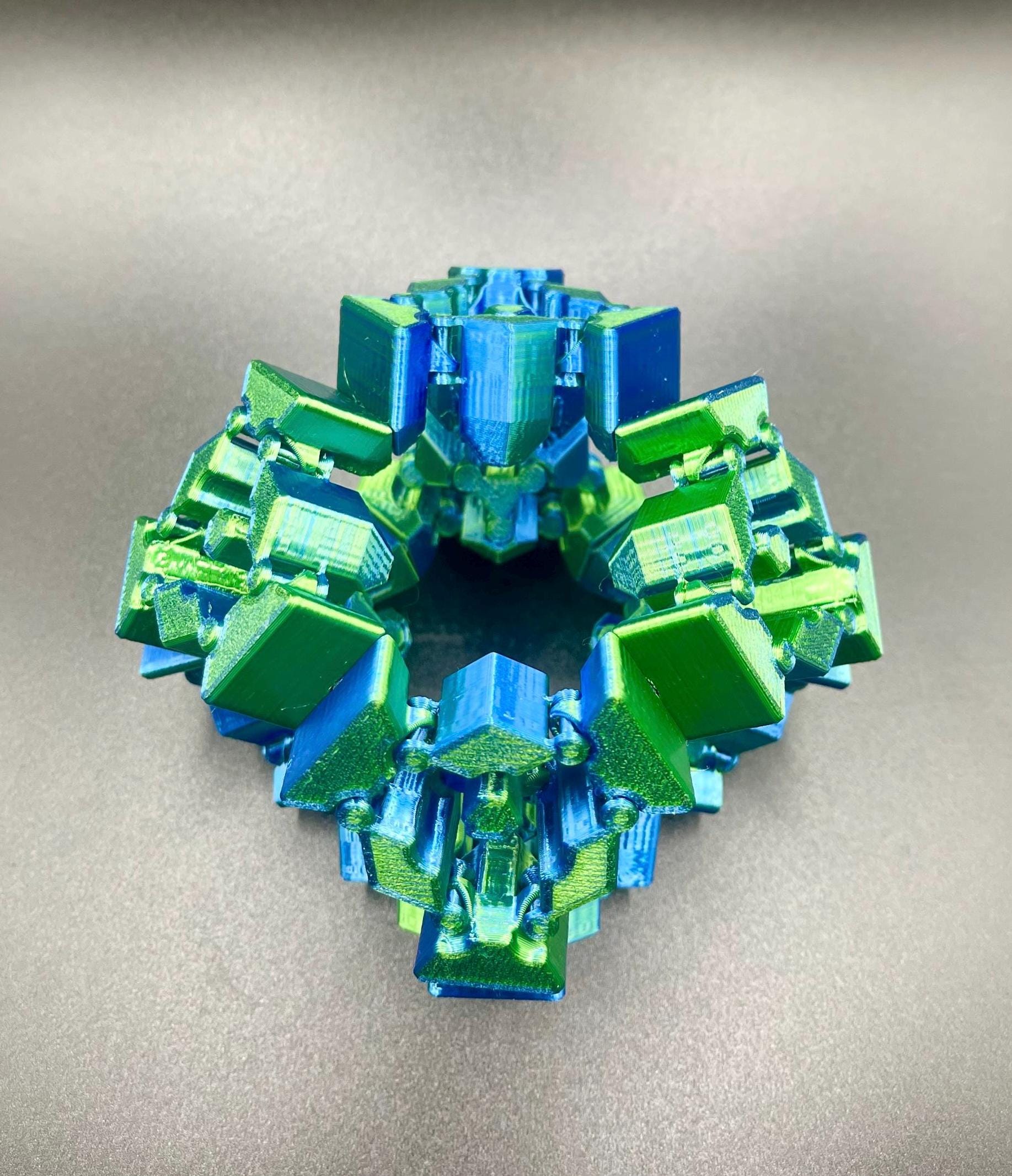 The Tri-Flex Fidget is an elegantly designed modular fidget toy that transforms with a flick of the wrist. When stationary, it forms a sleek triangular shape, but with movement, it expands into a stunning kinetic display. A must-have for those who love visually striking and deeply satisfying fidget toys!